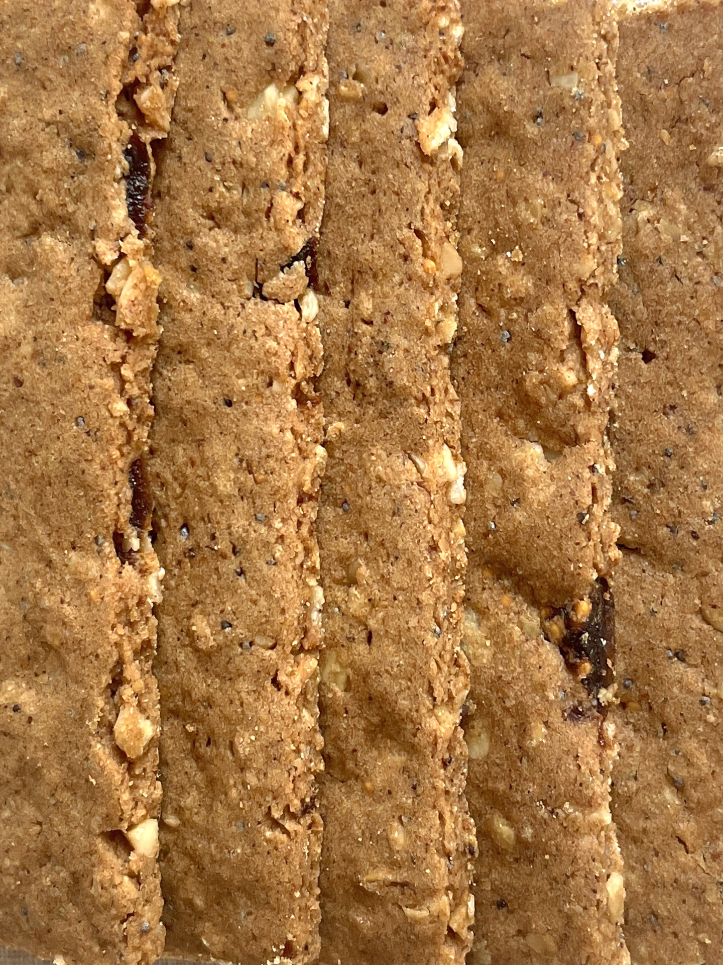 Ingredientes: água filtrada, flocos de aveia* (18%), farinha de aveia* (14%), farinha de amêndoa*, farinha de sorgo*, farinha de tapioca*, açúcar de coco*, azeite virgem extra*, figos* (4%), canela*, bicarbonato de sódio*, psílio*, flor de sal. * de agricultura biológica