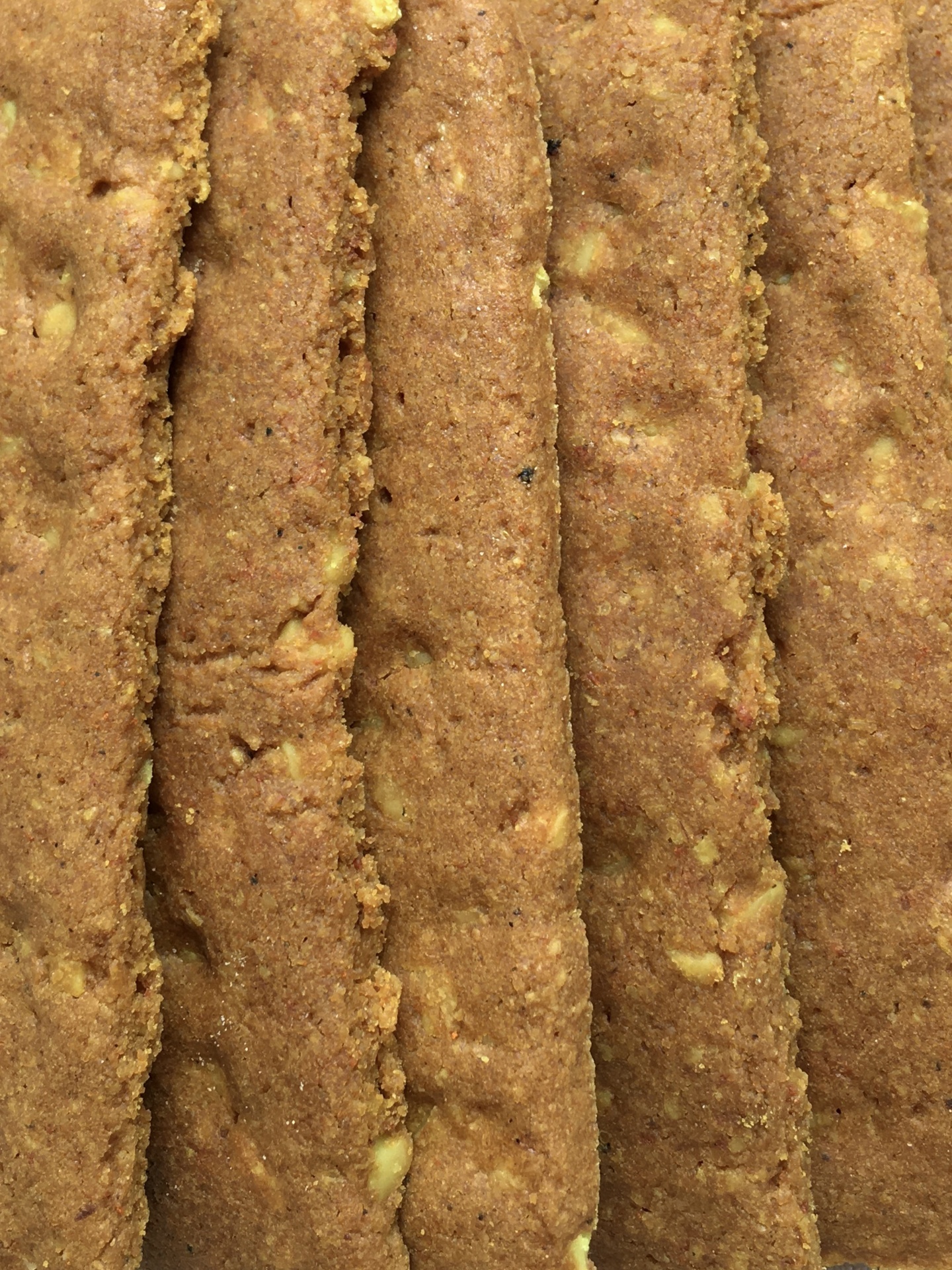 Ingredientes: água filtrada, farinha de amêndoa*, farinha de aveia*, farinha de tapioca*, farinha de sorgo*, açúcar de coco*, azeite virgem extra*, raspa de limão* (1,2%), curcuma em pó* (1,2%), bicarbonato sódio, óleo essencial de limão* (0,18%), psílio, flor de sal, sésamo preto*. * de agricultura biológica