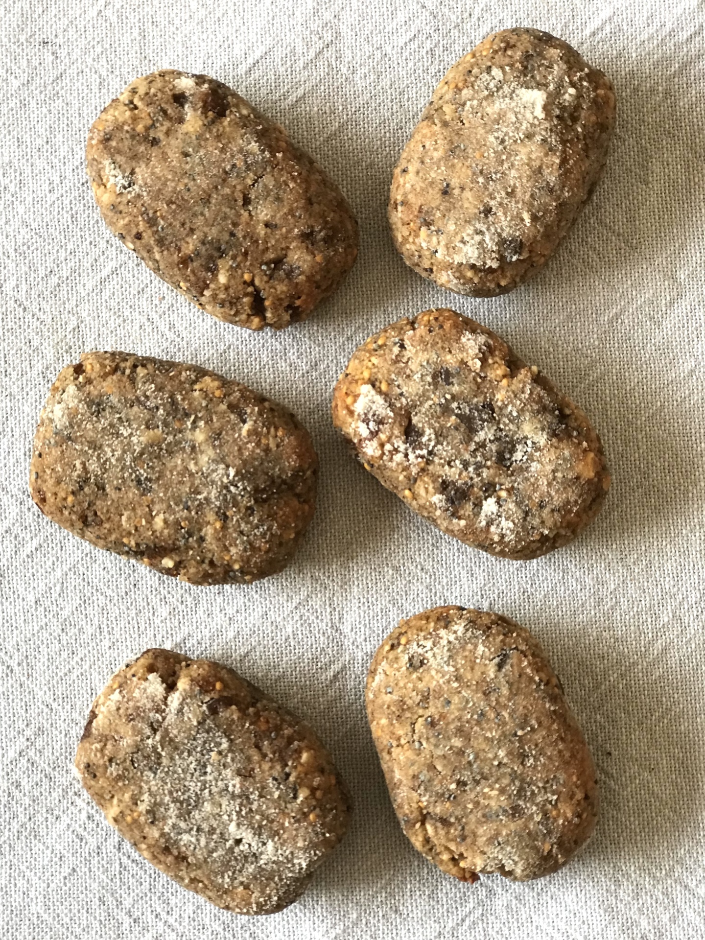 Ingredientes: amêndoa* (44%), figo* (44%), azeite virgem extra*, sementes de papoila*, raspa de limão* (4%), canela de Ceilão*. * de agricultura biológica