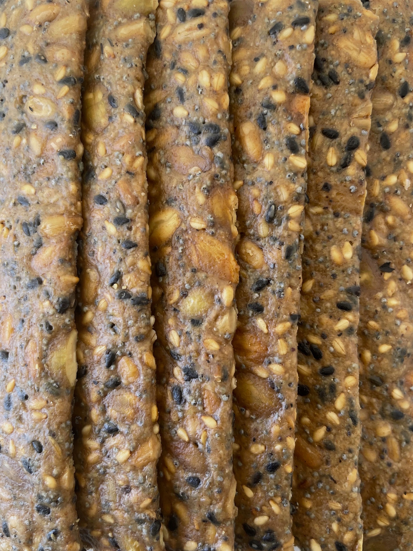 Ingredientes: Sementes de girassol*, abóbora*, sésamo*, sésamo preto* e papoila* (49%), água filtrada, azeite virgem extra*, farinha de grão*, farinha de tapioca*, psílio*, flor de sal, bicarbonato de sódio, pimenta preta* (0,2%). *de agricultura biológica