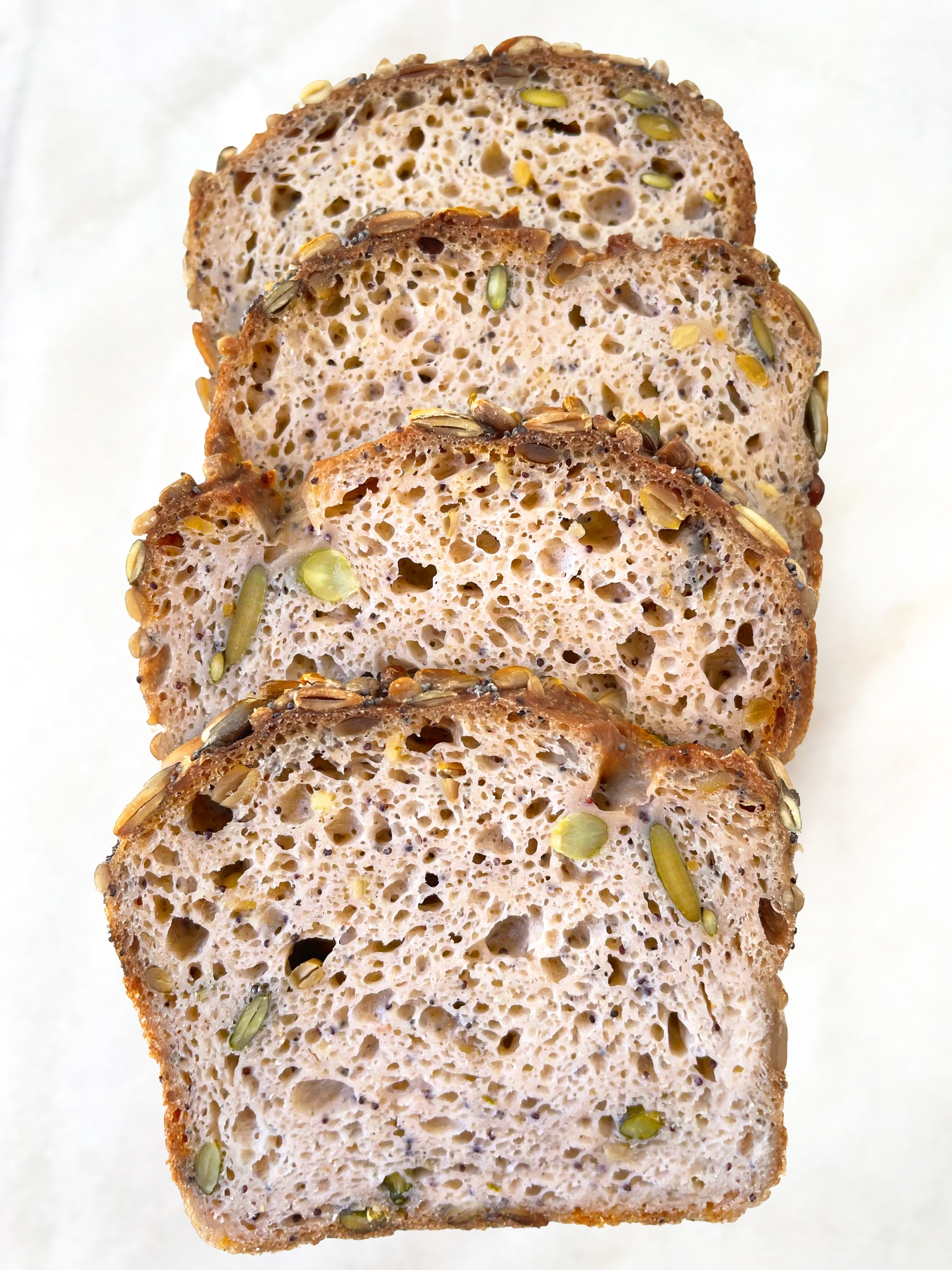 Um pão húmido e aromático com deliciosas sementes tostadas.